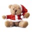 Plišasti medvedek, oblečen v božičkovo jopico in božičkovo kapo.